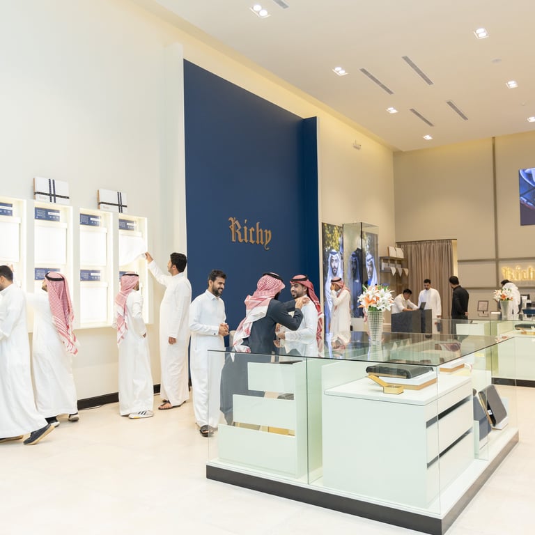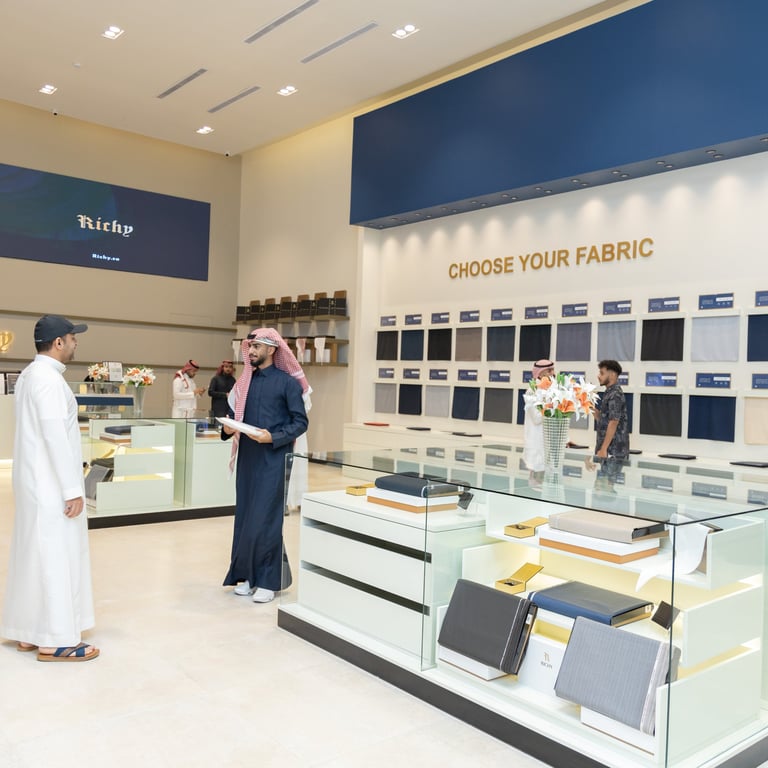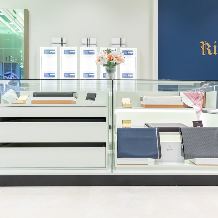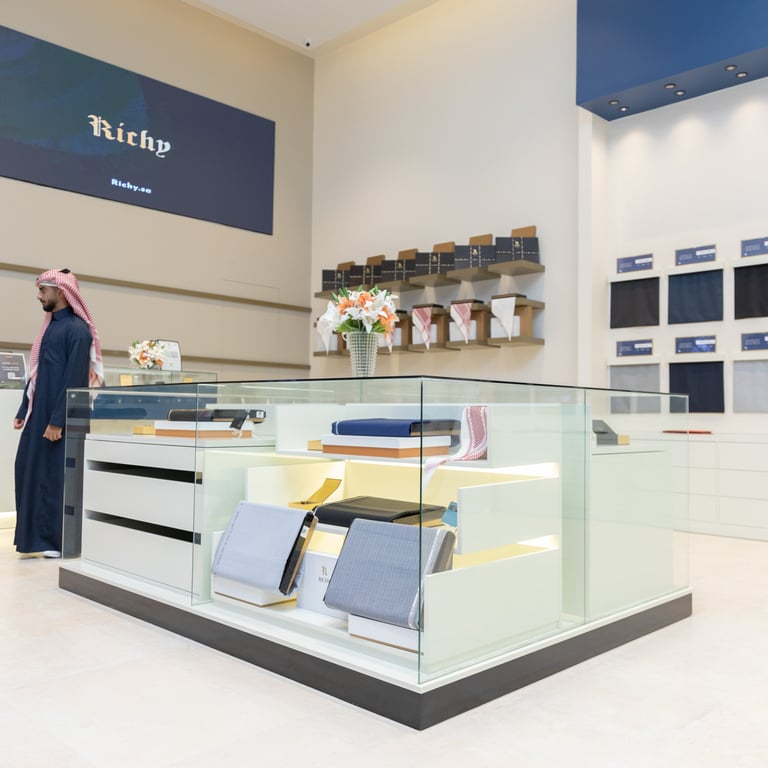 نوع المشروع : معرض تجاري ( شركة ريتشي للثياب والمستلزمات الرجالية ) .