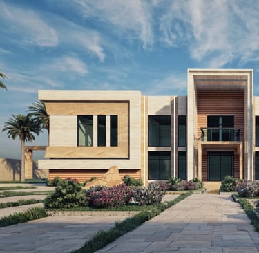 نطاق العمل : تصميم المخططات المعمارية والتوزيع المكاني وتصميم الواجهات , تصميم اللاندسكيب .