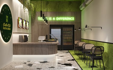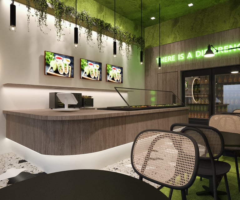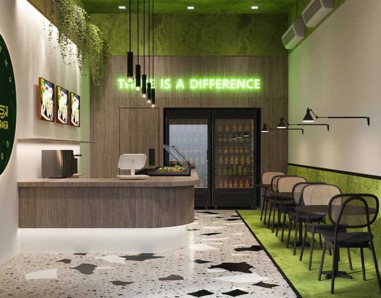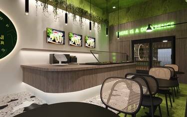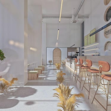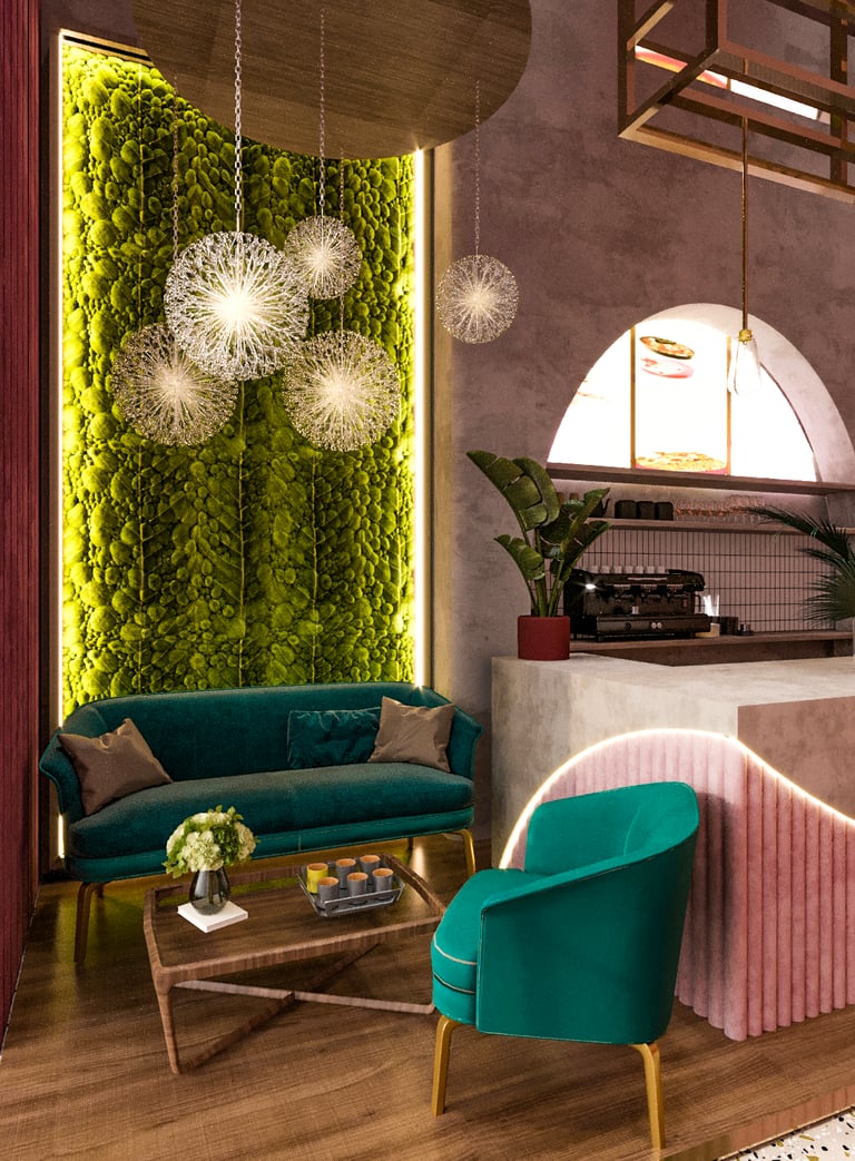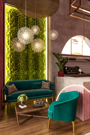 نطاق العمل : إعادة بناء الهوية البصرية , التصميم الداخلي , اعمال المقاولات والتنفيذ .