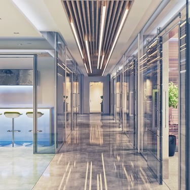 نطاق العمل : إعادة تصميم الواجهات , إعادة تصميم المكاتب والمداخل , اعمال التنفيذ والمقاولات .