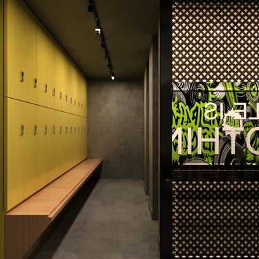فريق العمل في مَدد ستوديو بدأ بعمل الدراسات اللازمة للمشروع ومواقع توزيع دورات المياه والمداخل والاجهزة الرياضية , وتم اعتماد الدهانات الجدارية لتوحيد هوية المشروع مع بعض الاضافات الجبسية للديكورات بالاضافة الى بعض العبارات التحفيزية للمشتركين ومحاولة ادخال بعض الالوان المبهجة لتُساهم في رفع وتيرة الحماس وزيادة الطاقة .